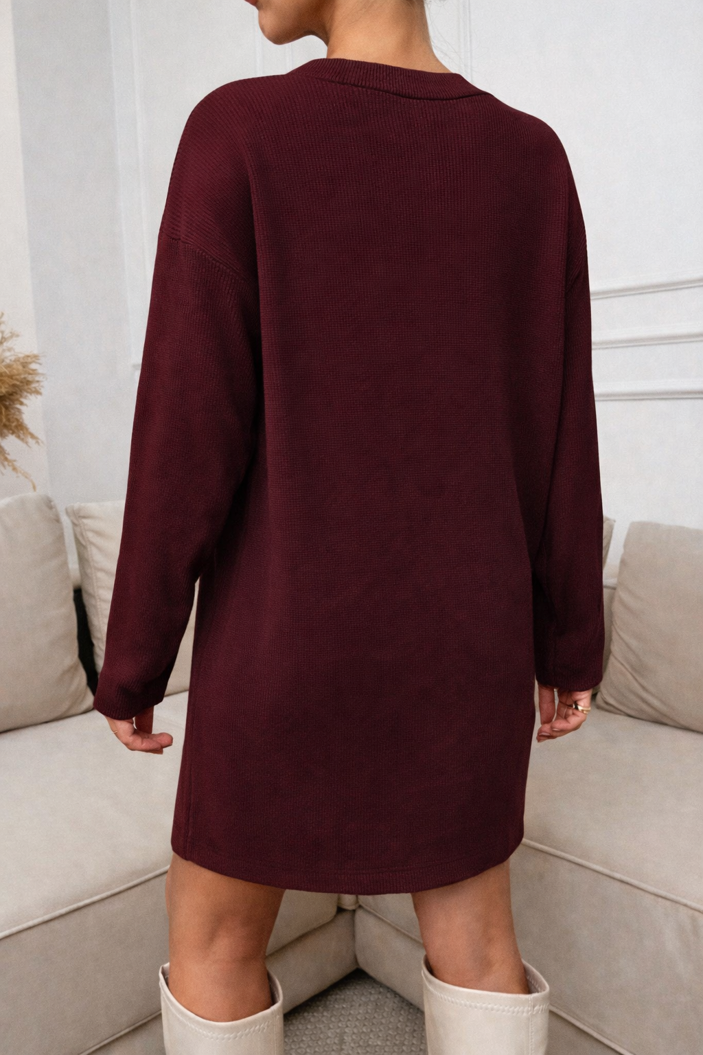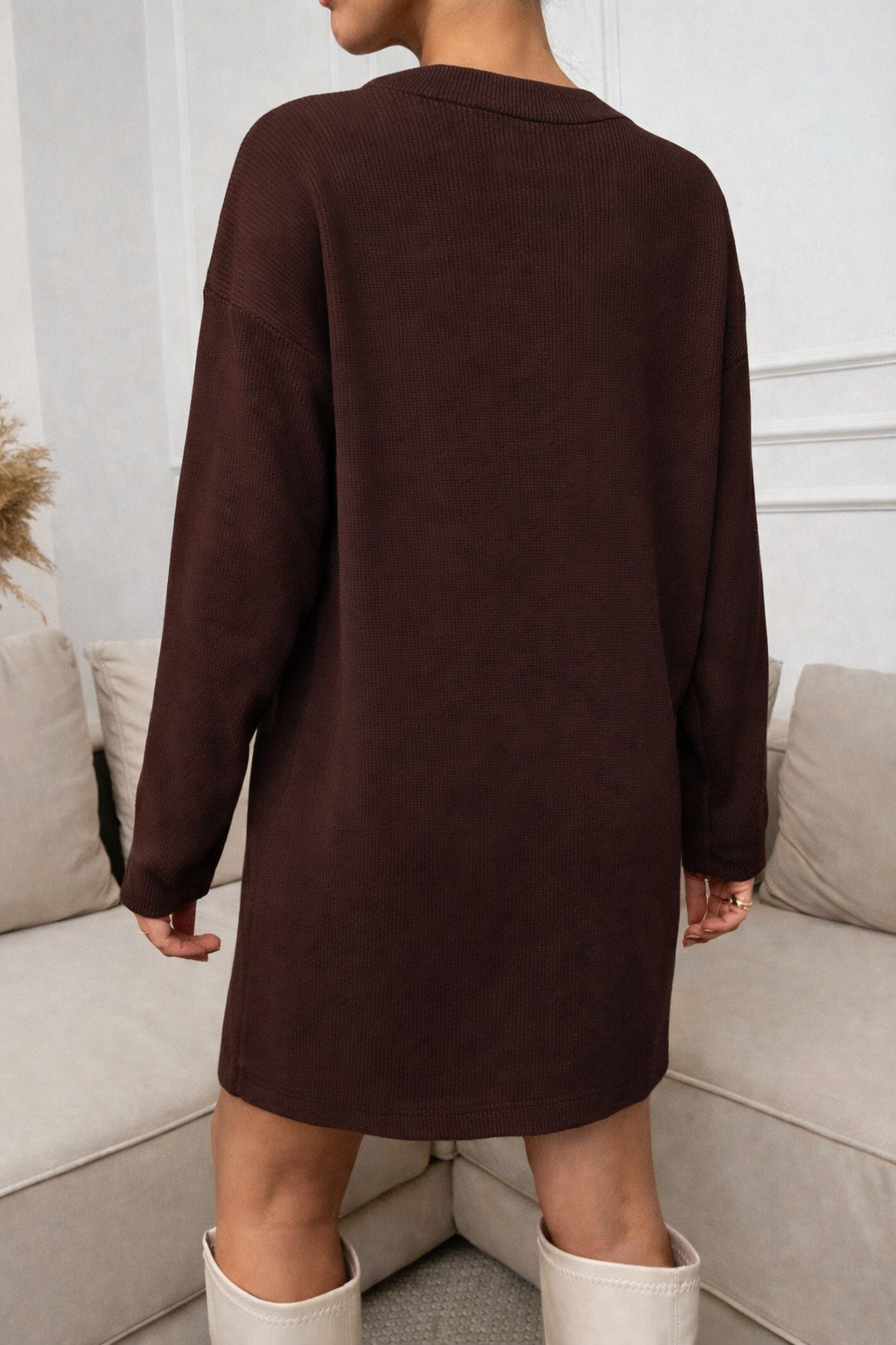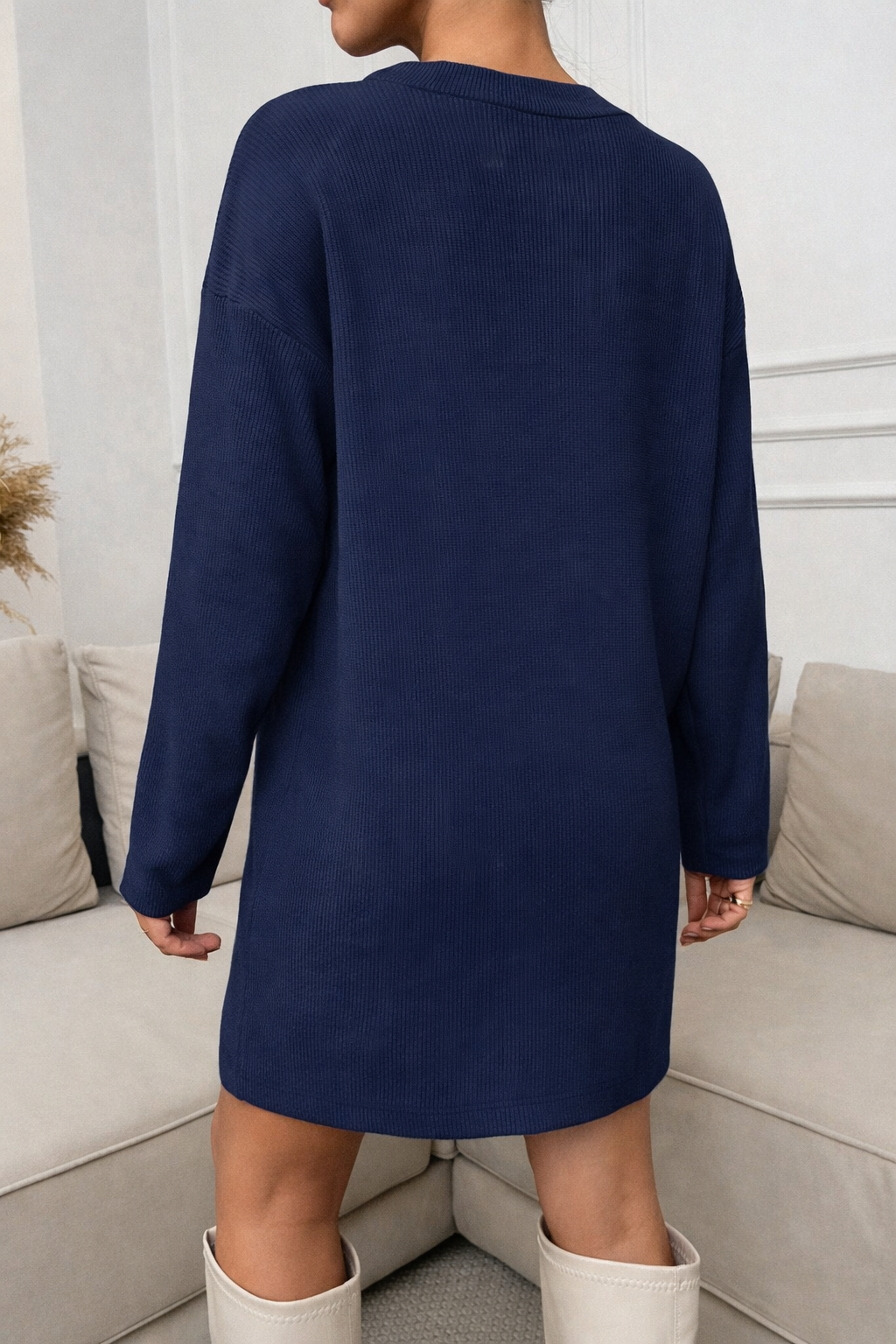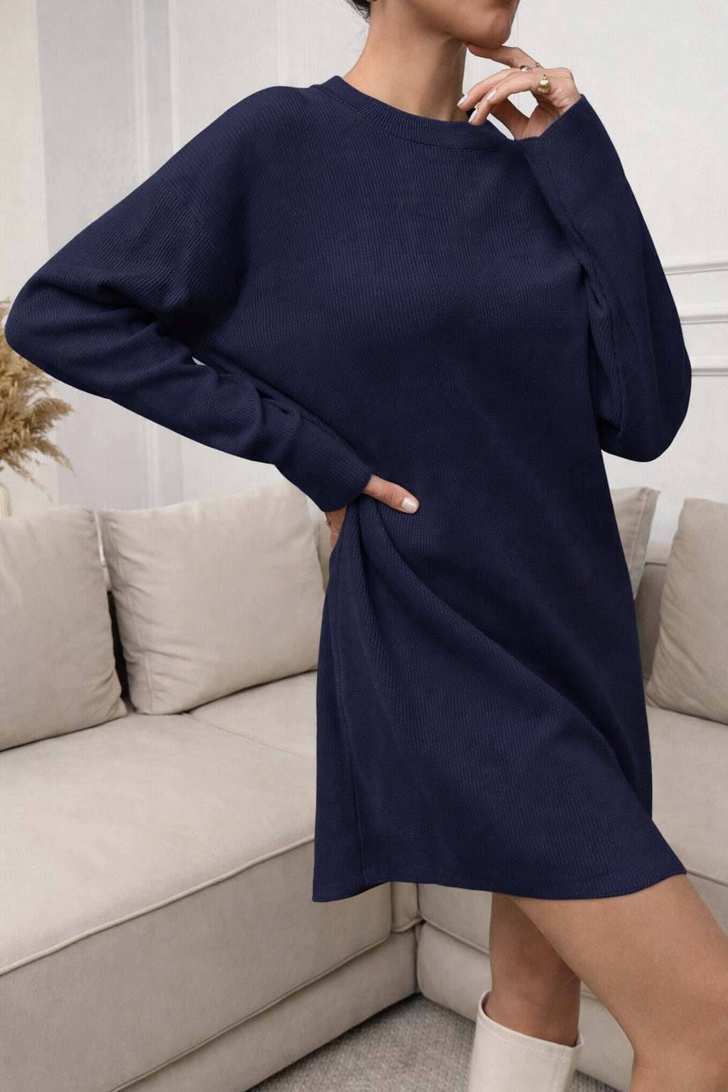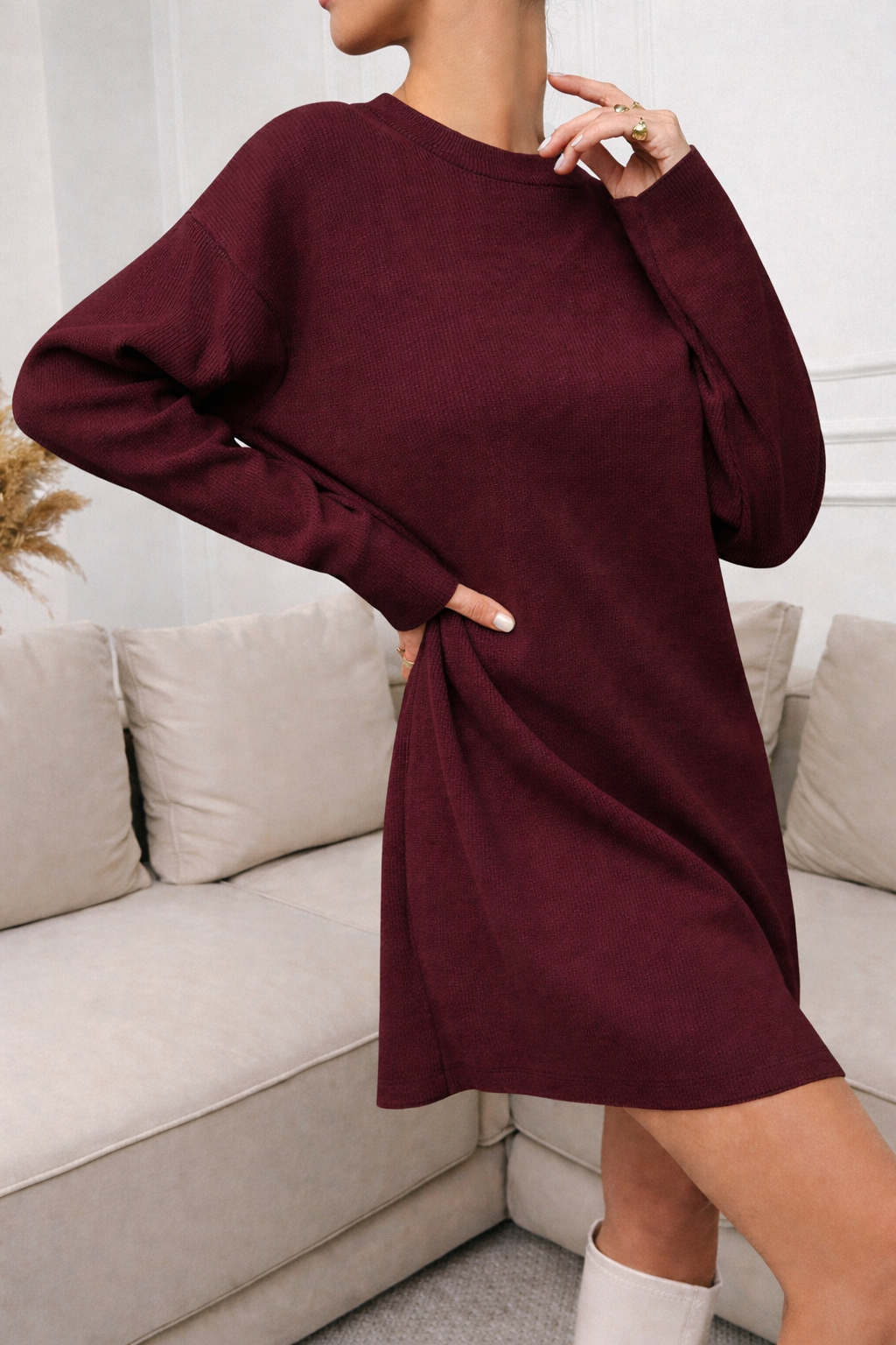 STELLA Robe courte décontractée à col rond et manches longues.